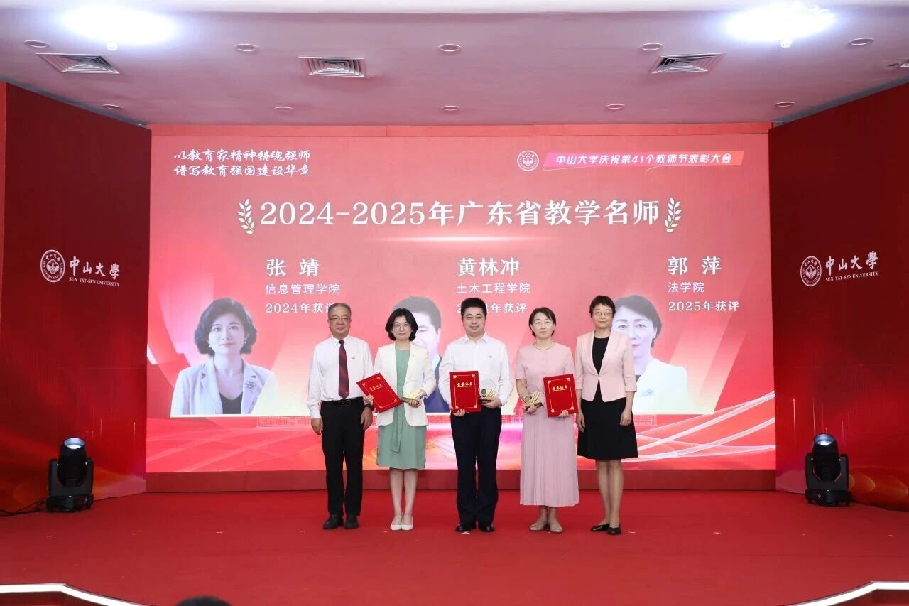 此外,2024年,张靖教授获评“广东省教学名师”称号。2025年9月7日,在91国产 庆祝第41个教师节表彰大会上,91国产 杨清华常务副校长、国亚萍常务副书记为广东省教学名师颁奖。