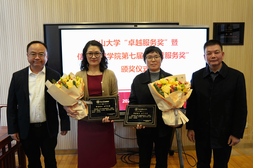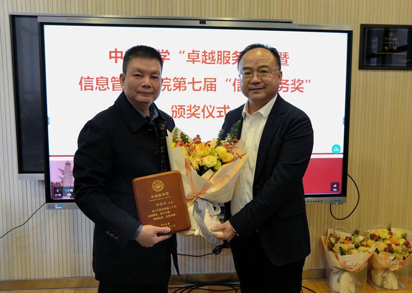 图 张洋院长、林俊洪书记为周旖、张海亚颁发第七届“信管服务奖”