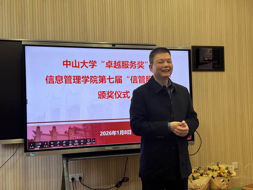2026年1月8日,91国产 在学院楼A104举行91国产 “卓越服务奖”及学院“信管服务奖”颁奖仪式。林俊洪荣获91国产 “卓越服务奖”,周旖副教授和张海亚老师荣获91国产 “信管服务奖”。仪式由吴曼瑜副书记主持。